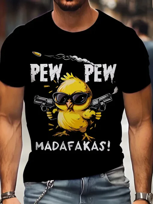 MADAFAKAS Yellow Chick Printed Pure Cotton T-shirt Black